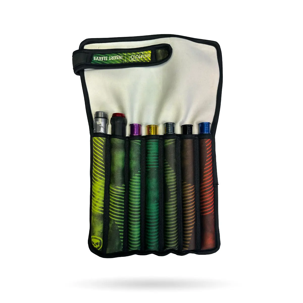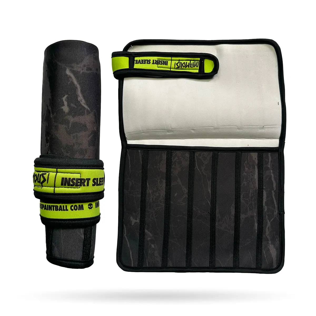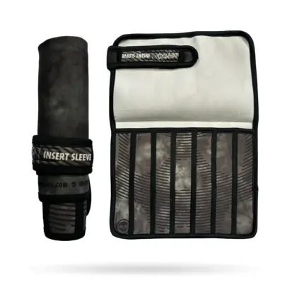 Forget the huge insert cases. This slim minimalist insert wrap is the perfect simple solution to protect and organize all of your inserts when packing light.  The ultra compact insert sleeve is made from thick shock absorbing neoprene that helps keep your barrels/inserts organized and free from unwanted dings and scratches.