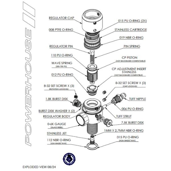 - Rotational Locking Stainless Steel Cartridge: Combined with our “true low profile” burst disks, this feature allows for custom alignment of the regulator gauge and fill nipple, eliminating wrist discomfort and the unsightly Frankenstein neck bolt burst discs.